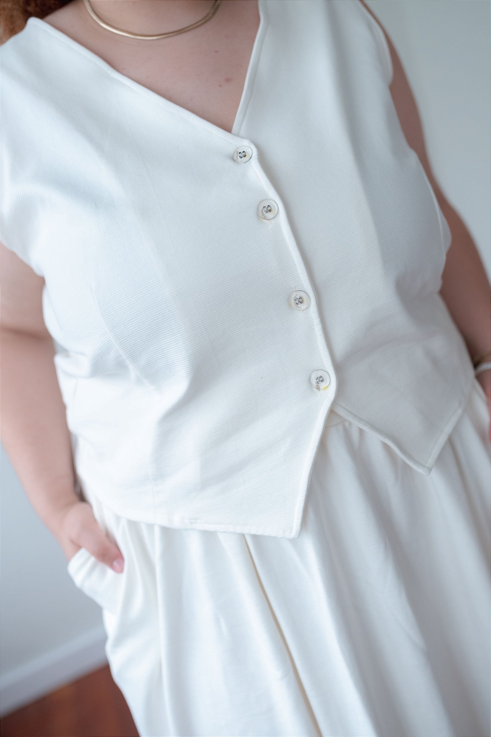 O decote V alonga a silhueta e valoriza o colo, enquanto os botões frontais acrescentam charme e permitem usar aberto ou fechado. Com caimento confortável e estruturado na medida certa, é ideal para compor looks casuais, office ou arrumadinhos.